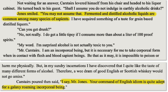 Read the entire piece about the adventures of a grain based distilled liquor enjoyer from beyond the stars for free at 1-900 HOT DOG.